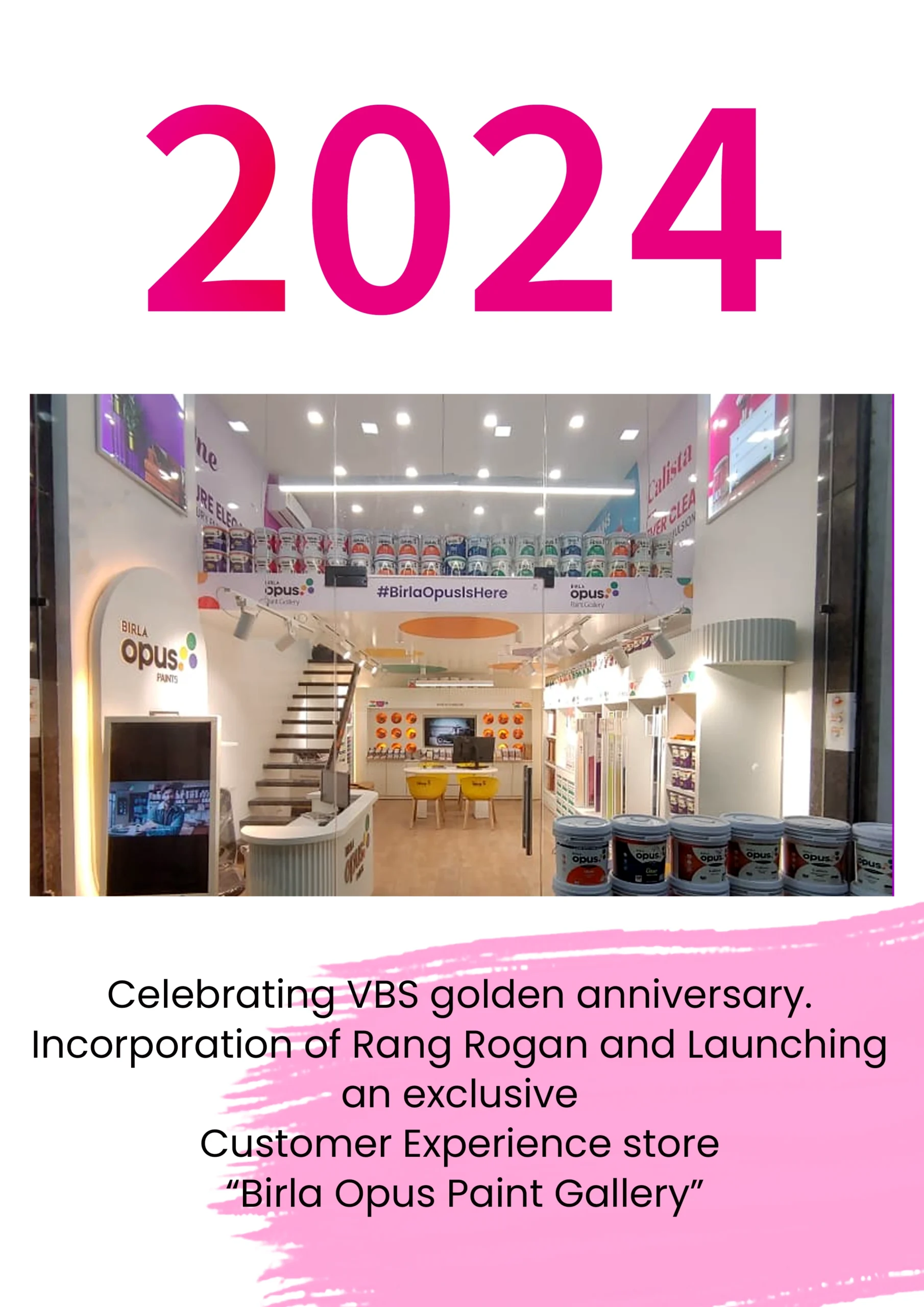 In 2012, Paras and Puneet Khanna took over the business, rebranding it in 2019 and adding color bank machines from Asian Paints, Dulux, JSW, and Opus. VBS earned consecutive Araldite Awards for quality. In 2024, the brothers launched Rang Rogan, a Multi-Brand Paint Store, and the Opus Paint Gallery in partnership with Birla Opus.